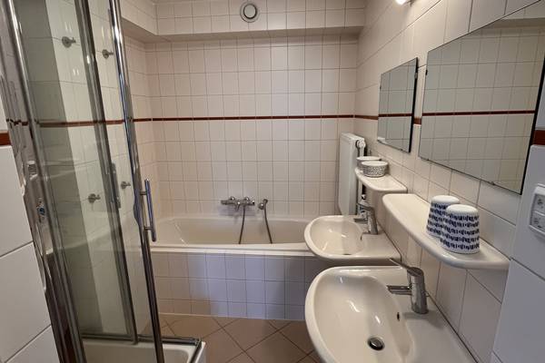 - Two bathrooms; on the ground floor with shower and sink. On the first floor with shower, sink and a spacious bath. Two separate toilets