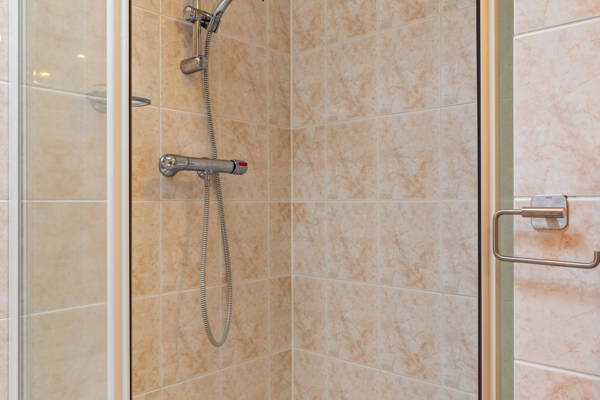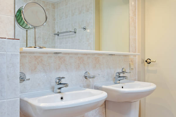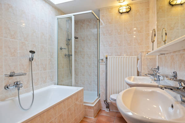 - The large bedroom has its own bathroom with bath, shower and toilet. The other two bedrooms share a shower with sink and separate toilet.