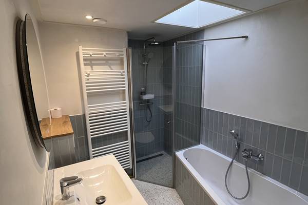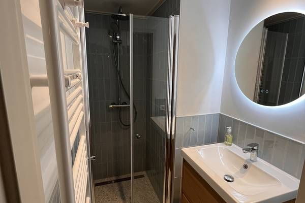 - The large bedroom has its own bathroom with bath, shower and toilet. The other two bedrooms share a shower with sink and separate toilet.